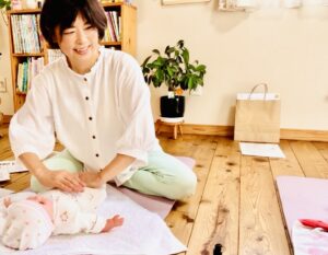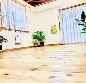 おひさまかあちゃんの教室は無垢材で作られた木のおうちのお部屋です。築20年以上が経ち、決して新しい家ではありませんが、柱も床も天井もドアもすべて無垢の木。