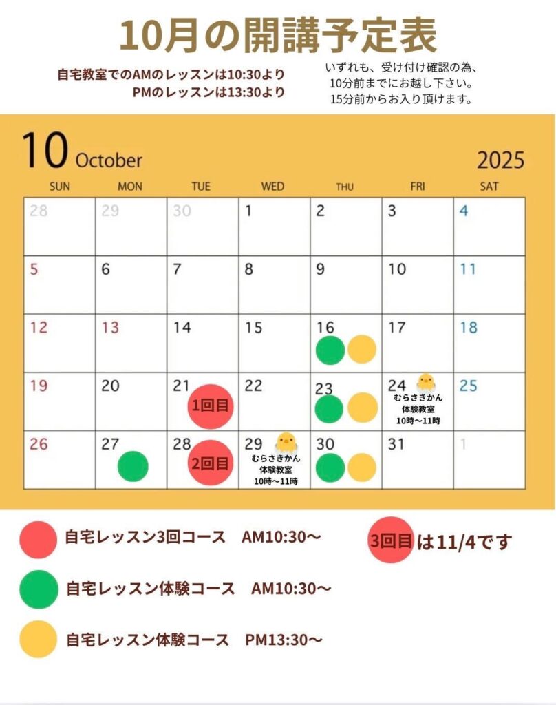 (お支払いは現金のみとなります。レッスン開始前にお支払いください。)