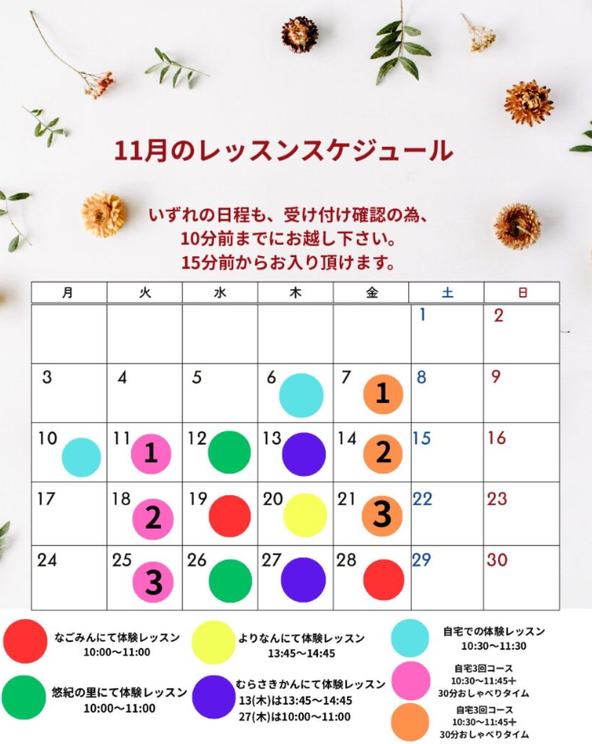 ※レッスン終了後は自由解散ですが、約30分の自由参加のおしゃべりタイムを設けています。